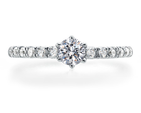 華奢なリングに、ダイヤモンドがしっかりと敷き詰められた華やかな婚約指輪。高品質なエクセレントクラスのメレダイヤモンドが、思わずうっとりしてしまう程綺麗に輝きを放ちます。お二人の心を繋ぐハートがさりげなく施されているのもポイントです。